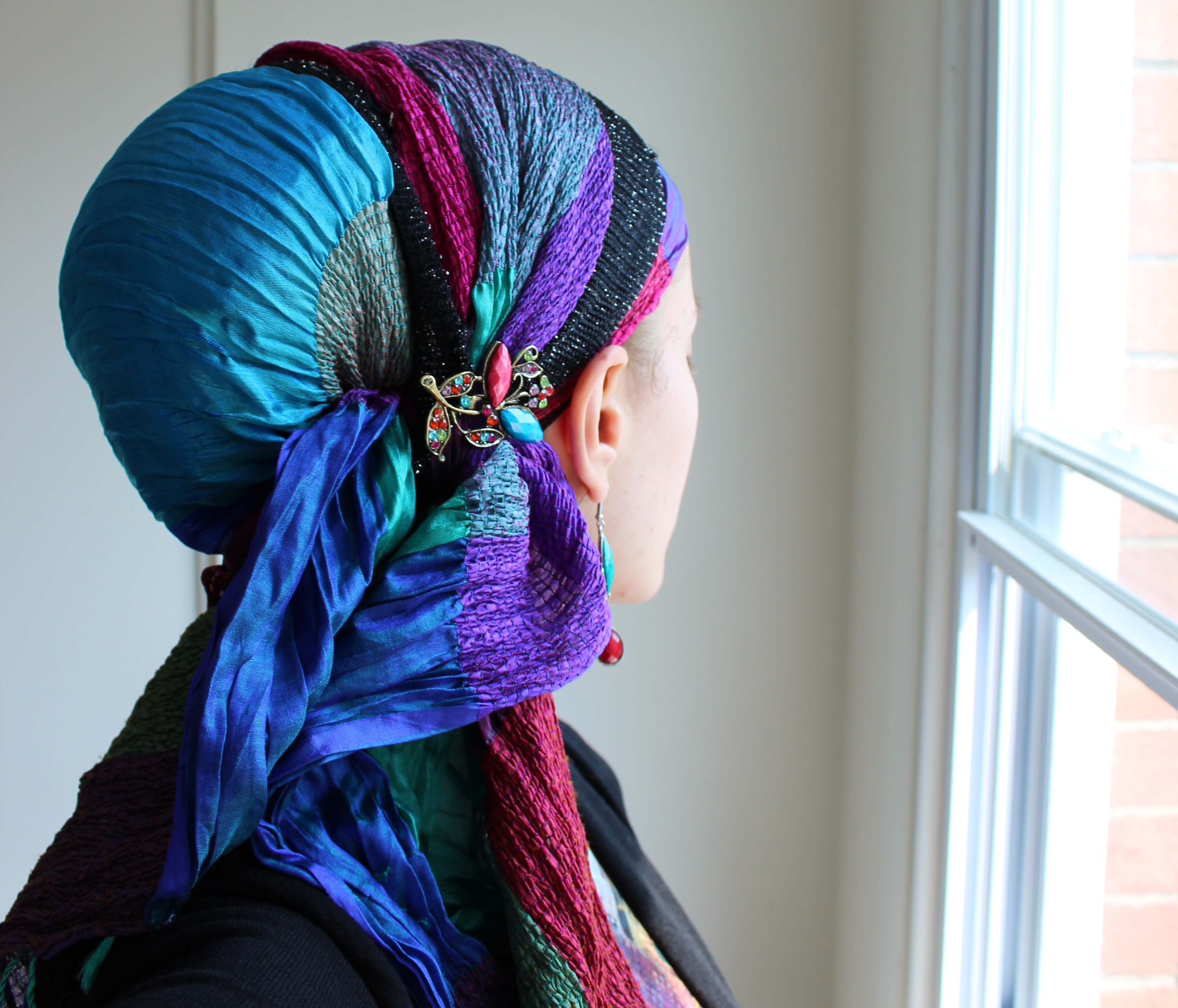 A knock out! You hit it out of the park! I love the matching earrings and tichel pin! LikeLike 2013/09/10 at 7:03 pm Reply