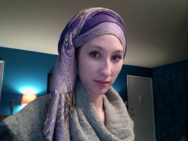 Honor Anastasia – I began covering my head a few years ago, simply because I loved how it looked. It was purely fashion and hair protection. But as I covered more and learned more and more about why other women cover, it became so much more. I have fallen in love with the elegant modesty covering your hair brings. I have developed a spiritual connection between me and my scarves. When things become to crazy in my life or I feel lost, I can find G-d in my scarves. The act of covering my hair, of creating wraps that both emanate modesty and beauty, the very idea of moving past society’s ideas of beauty into a whole other level, is just so amazing. When I see a women who has covered her hair, I see a powerful woman. Whether she is strong in faith or femininity or simply her own convictions, I see that power. I do not cover every day, or nearly as much as I want to, due to the fear of persecution and ignorance. But when I do cover I feel beautiful and I feel strong.