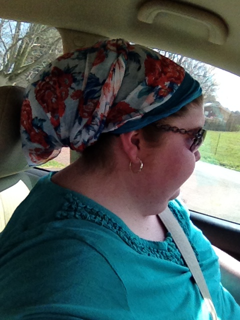 I’d love to. I have dozens of lovely scarves and frequent bad hair days. But the fool things never stay on. The back of my head is flat, the knots slip out and it falls off in minutes.