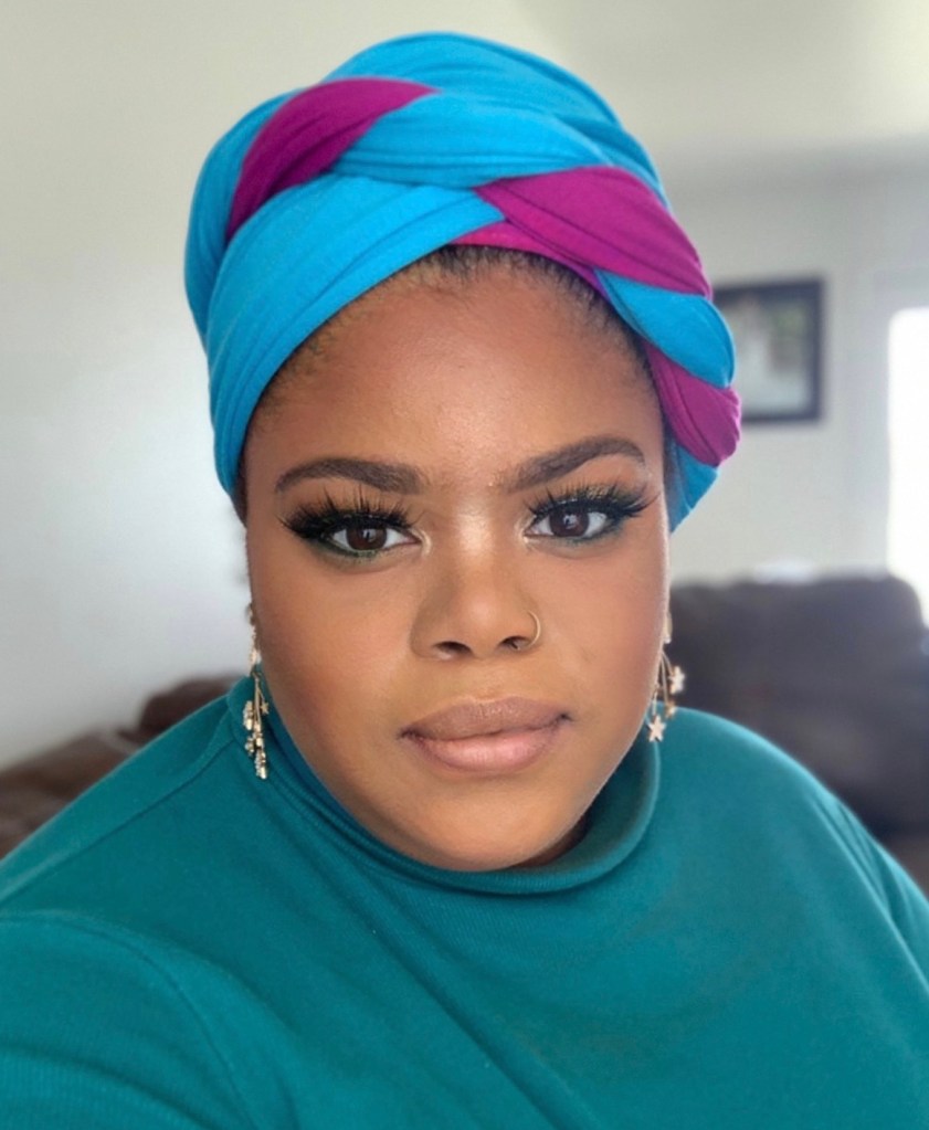 I remember the first time that I heard about Wrapunzel. I came across a tutorial on YouTube from one of my favorite makeup enthusiasts, and she was reviewing some Wrapunzel products. A few weeks later, I made my first purchase, and I’ve been hooked ever since. I love the Wrapunzel scarves because I can be really creative. I watch tutorials and I learn a lot from the ladies in the Community Facebook group, and this is where I draw some of my inspiration from, but I’m quite partial to the Turban. I love different variations of it. I feel so dignified in a large and high turban— especially when it’s paired with my Uber Pouf Shaper.