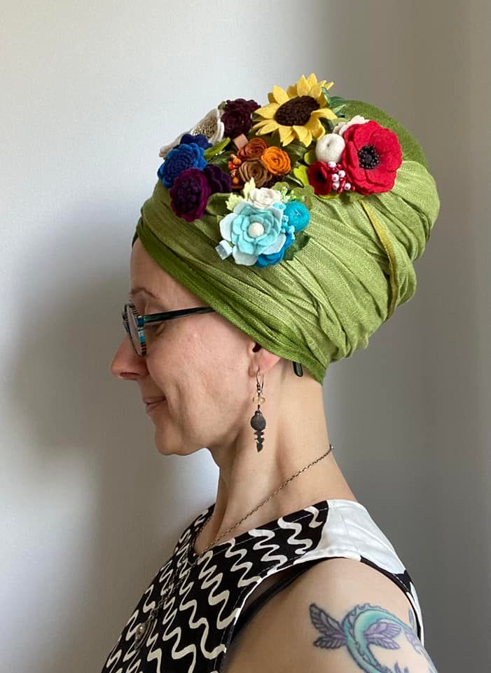 We love it when the seasons change. We leave the cold, dreary days of Winter behind us and they make way for the sunny, warmer and verdant times of Spring. Wrapunzelistas, you were truly in bloom with this challenge! In sync with the merry month of May, flowers, vines and all things green appeared on your wraps. Flower accessories and flower shapes too – all were YOU! Who doesn’t love a bunch or bouquet? 🙂