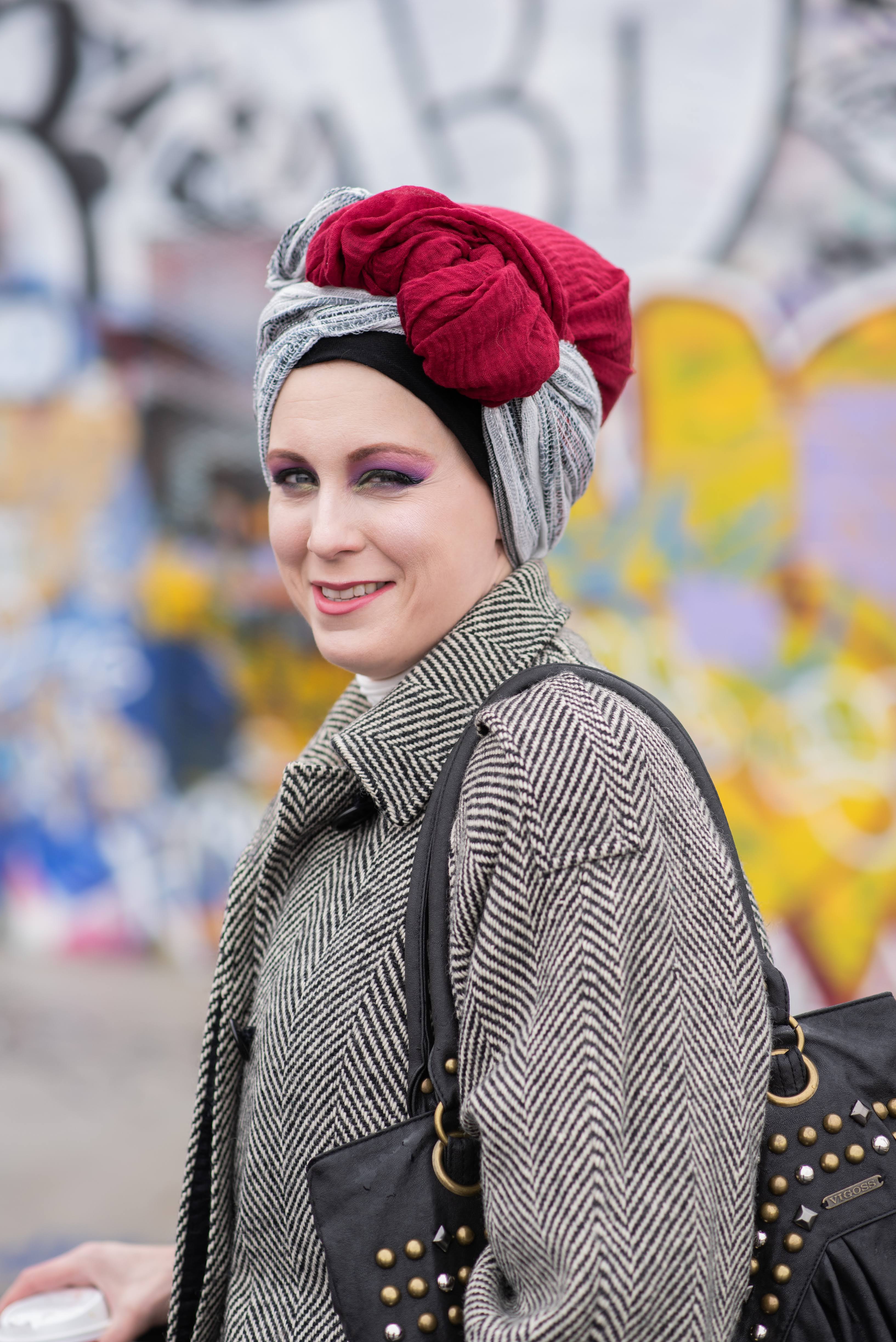 3. The Lakeshore Bliss Scarf – Yes, this scarf is blissful. A sister scarf to the Soft Pashmina, the midweight Lakeshore Bliss Scarf also has a pattern – this time in two colors – all through the scarf. The fabric is soft and malleable, gives your head a gentle hug and is very easily wrappable. The Lakeshore Bliss is a favorite among all wrappers and is one of our Wrapunzel ‘faves.’