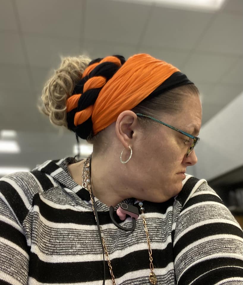 Here are some stories from members of our Wrapunzel Community about their wrapping at work. Melissa Laurel tells us “as far as my wraps, my boss is all for it. I’ve posted here before that he even says he likes when I wear sparkly ones. 😂 I wear pretty much whatever I want, whenever I want, however I want, in regards to how I cover my hair. I haven’t tried really big super turban wraps. I think that would probably be pushing it for a Front Desk position, but Regal Wraps, low buns, veils, Beginner’s Luck, and snood/beanie slouchy type hats have been perfectly fine. I wear a variety of prints and colors, and I try to coordinate that with the clothing I wear each day.” Again, the theme of coordinating your workplace wraps with your outfits. Seems the best way to go!