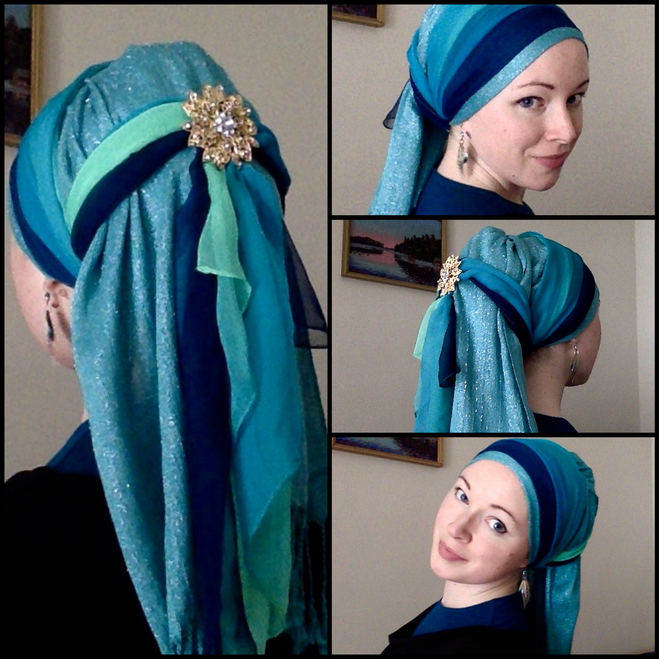 “When I was growing up, our neighborhood was “ultra-Orthodox” Jewish, and in that world, I did get to see some hair covering. At that time, and in that place, the women who covered their hair outside of shul had only two options. They wore shaytls (wigs) whenever they needed to look good and they wore tichels whenever they didn’t need to look good. Those tichels were kerchiefs- small triangles of fabric tied around the head. They weren’t ugly, but they certainly weren’t pretty.