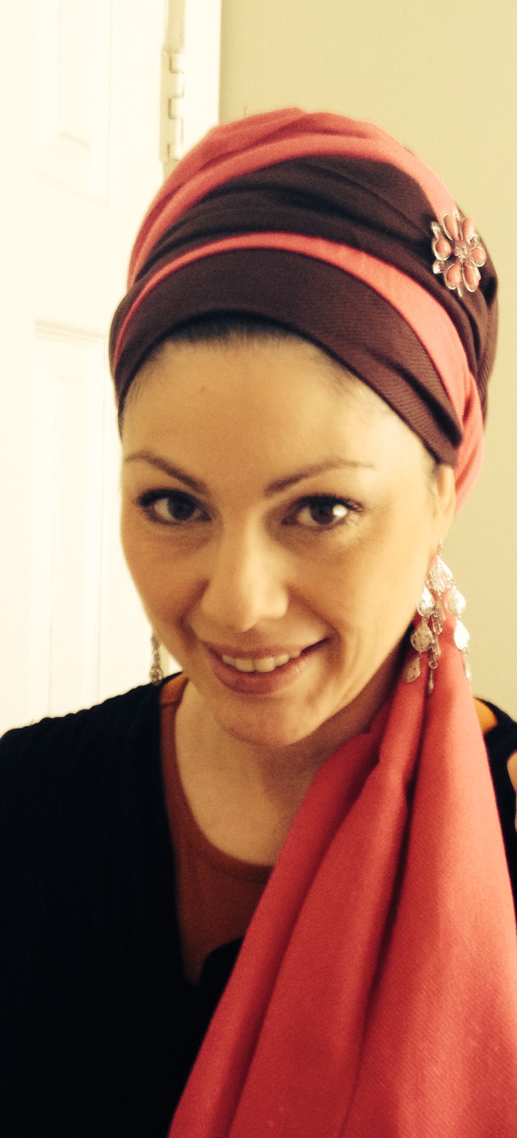 The first moment I saw Heather’s glowing face when she posted a photo on the Wrapunzel Store facebook page, I was bowled over! Her smile! The infectious love for hair covering! Wow! Who is this woman? A few photos later and it was more than clear that she had to be a Lady Wrap Star on this blog! I was also very curious to hear her story and get to know the woman behind the smile! Well, thankfully she was happy to share with us! Let’s hear it for Heather!