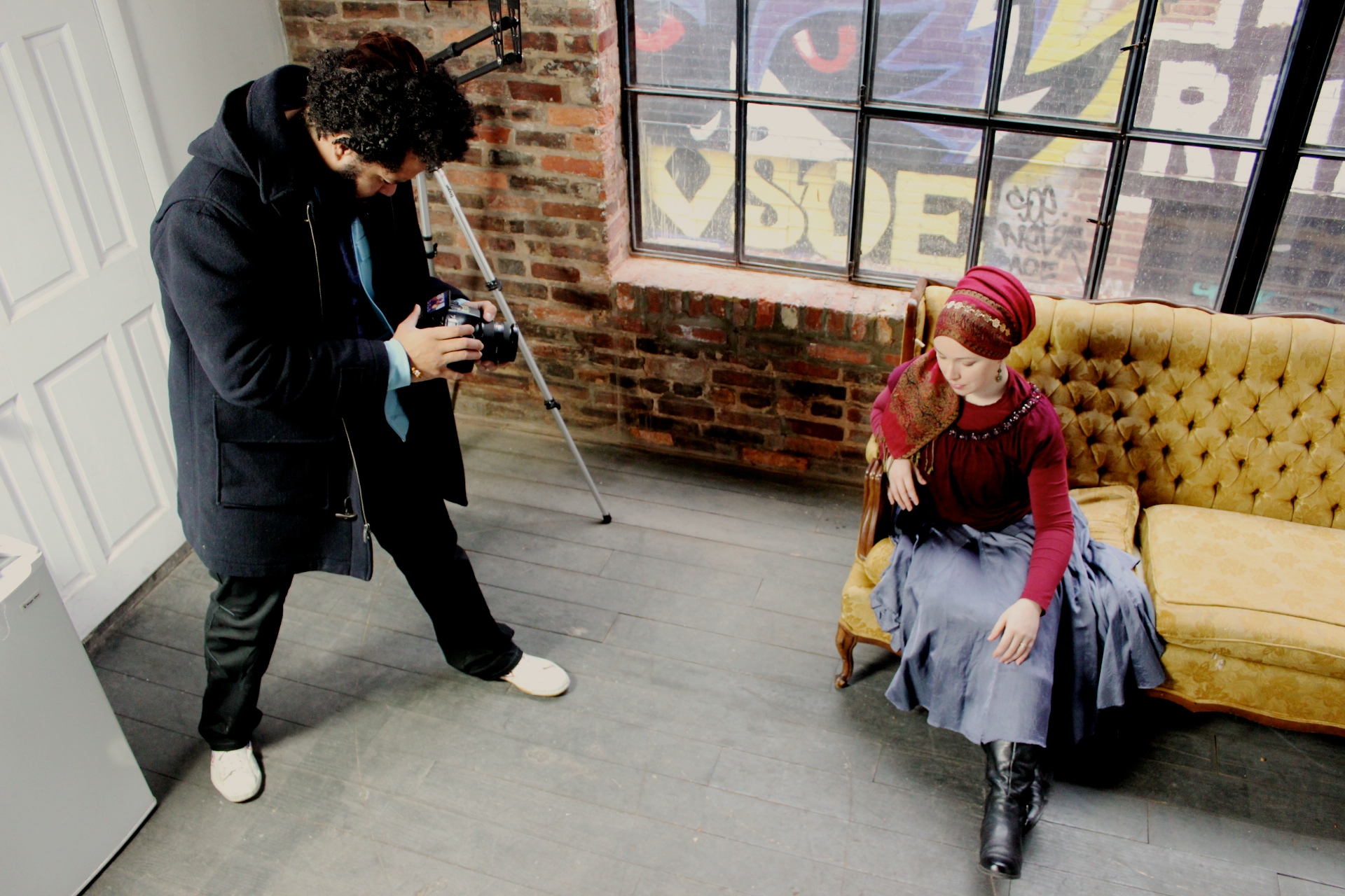 Today Andrea and Rivka Malka demonstrate tichel techniques and sell them through a site called Wrapunzel. I meet them in a Flatbush home a couple of hours before a sale; with characteristic warmth, they usher me through the controlled chaos to a couch to chat, as Rivka Malka’s husband and a couple of her children haul in boxes and pile tichels on tables. Tonight Andrea’s face is framed in a navy tichel layered with a patterned sari scarf (made of sewn strips of sari fabrics) and topped with a row of pearls; Rivka Malka is wearing striking layers of teal and rust. Both women have delicate features that shine under these “crowns,” radiating wholesomeness and purity.