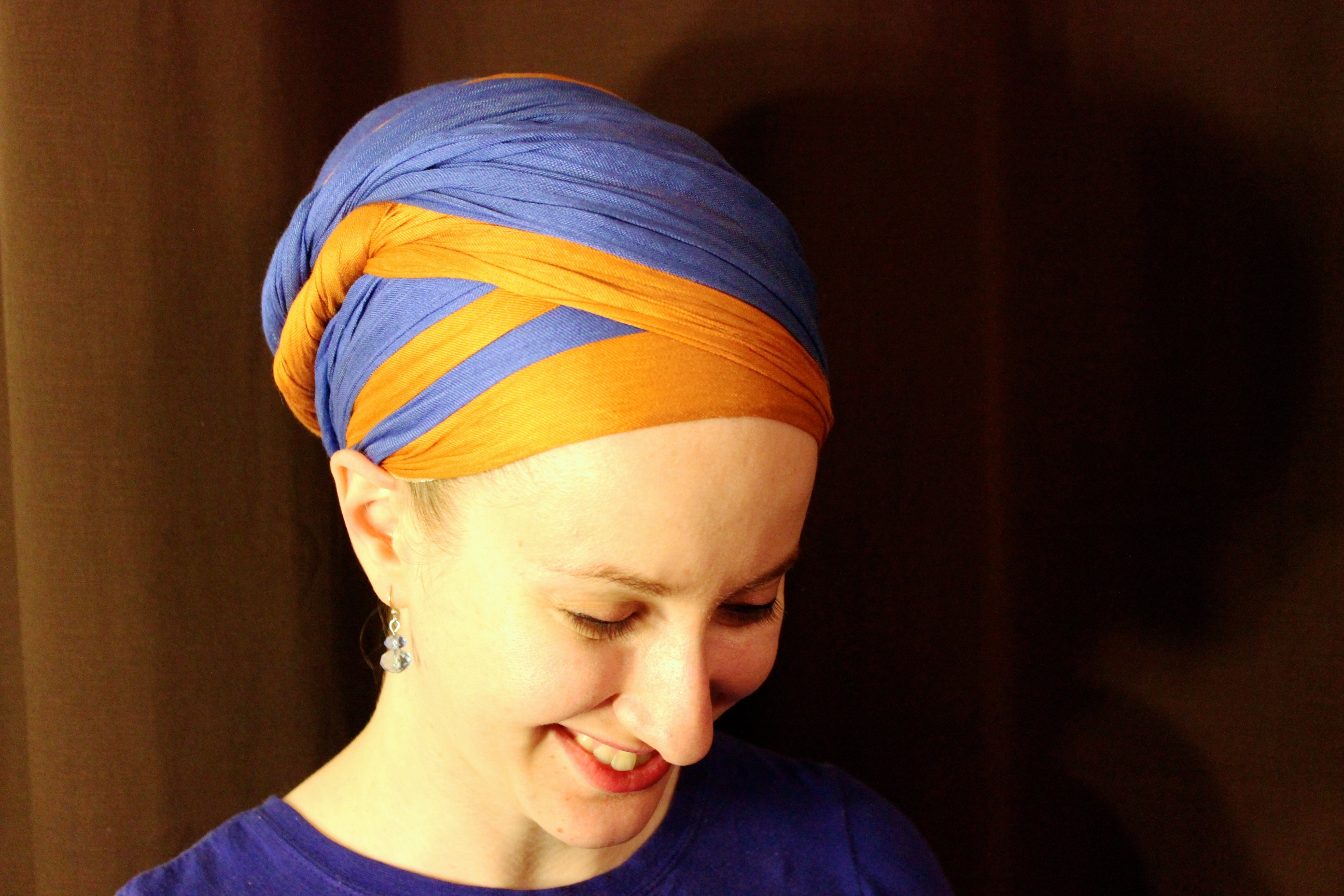 This tutorial is a bit bittersweet… it’s the same technique that I did wayyyyy back before Wrapunzel even existed (yup, I was making tichel videos on andreagrinberg.com, then created Wrapuzel the blog… and only after that did a store emerge – time flies when you’re having fun!) Anyway, back then I didn’t have a velvet headband or shaper, and was too shy to talk to the camera so I just had gorgeous classical music playing – check it out! Awwww nostalgia ❤