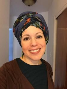 Cynthia Al-zageruri, a thirty-one year old residing in New York with her husband and children has been covering hijab-style for eight years, since marriage. A very regular presence on the Wrapunzel Community Group, Cynthia shared with Wrapunzel that most of her headache issues come from the length of time she wears her hijab, how tightly she wraps it, and how she wears her hair in a cap underneath. She isn’t able to wear her hair in a tight ponytail under the cap without having symptoms, so she leaves it loose or in a low, extremely loose ponytail. If her hijab is wrapped too tightly, she will loosen it when pain symptoms strike, but she doesn’t feel any need to change her actual hijab style – which she wears to cover her head and neck/collarbone area simultaneously in accordance with Muslim religious law. Cindy has found the head and neck covering hijab style to provide even balance and weight to her wraps. In this style, wrap weight doesn’t pull backwards or forwards, and therefore lessons headache symptoms.