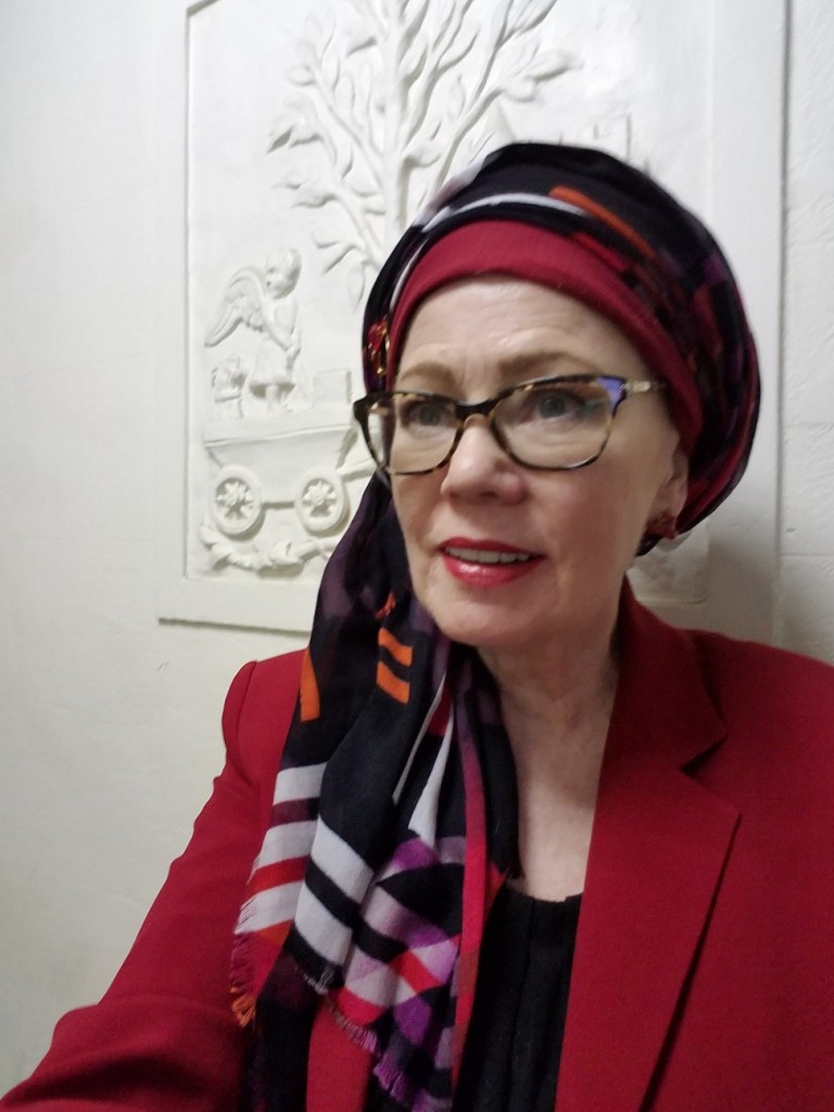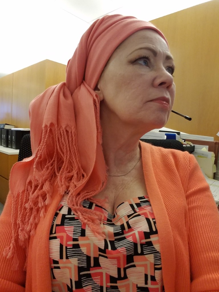 I’ve also noticed, for me anyway, that lighter scarves and scarves made of t-shirt material work best. They are forgiving and you don’t have to tie them tightly to get them to stay put. Cotton ‘Israeli” style scarves and printed viscose scarves are great for summertime. Wearing too much bulk or weight on the head makes things worse, but I’ve noticed I can get the look of a two or three scarf wrap with a simple ombre scarf, if it’s pleated the right way. Less is more. The more weight I have on my head, the worse the headaches. I also stretch out any headbands before wearing, stretching them out using a shoebox, otherwise I get the vice grip feeling again. For adding embellishment, therefore, I tend to stick to pins. Also, a good scalp massage before wrapping is helpful. If anyone is like me and sometimes wakes up with a migraine, pre-tieds, slip-on turbans and berets are also a great option. And, as always, if your headaches persist after trying all of these tips and tricks, see your doctor. Also, Stephanie Halapija’s video on headaches was a real game-changer for me when I was still new to wrapping and I highly recommend it.