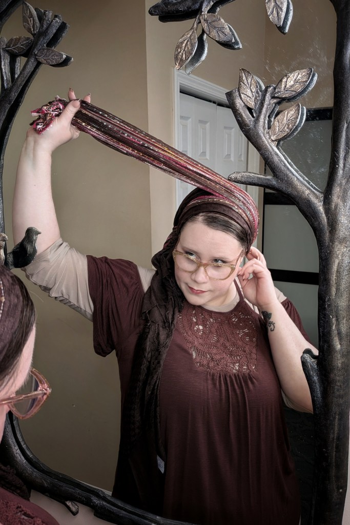 Life kept happening, and after my son was born, I started revisiting the ways that denying my needs had cost me a sense of peace and wholeness. I saw my young adult students dressing to please themselves and openly discussing their neurodivergence, and they were so much more grounded and empowered than I had been at their age. I became more aware of the ways autism presents in women and, eventually, a diagnostician concluded I meet the criteria for autism level 1. The word for why I hadn’t worn a headscarf is called “masking,” and doing it had been slowly killing my soul. I had been using my clothing and hair to beg people to accept me, and it had only made me feel that my real self was unacceptable.