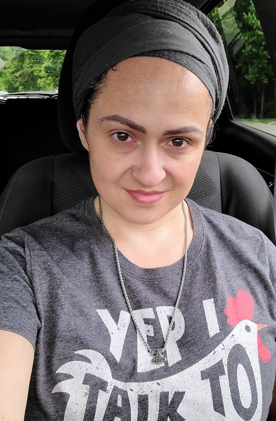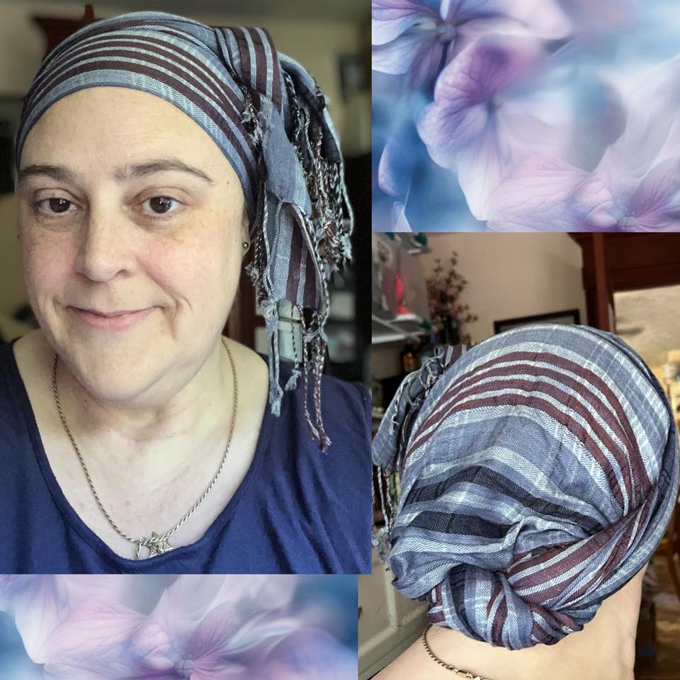 Seeing is believing, so here is a year in review, starting with one of the last pictures of me before I decided to wear a tichel.