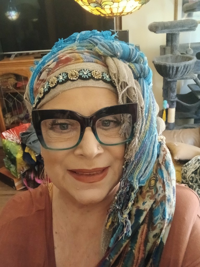 Wrapunzelistas, it’s getting to be that time of year again! Time to ditch all of those heavier Pashminas from the autumn and winter seasons, and to break out the contents of your summer tichel wardrobe. Don’t forget your Israeli Tichels, Tuff and Original 2 in 1s, New York Brights, and other lighter-weight and open-weave scarves! They’ll be your warm-weather friends as temperatures rise. Of course, you’ll want to take leave of the added heat of your Shapers for a while. Some have no problem wearing Shapers year-round, but many can’t take the heat that a Shaper brings. So we brought you this Challenge, the Shaperless Summer Challenge, to give you a chance to show us your wrap styles ‘sans Shapers.’ You brought all the ‘flouf’ without the pouf, that’s for SURE! You look terrific as always, and the variety of your wrapwork was astounding. You created voluminous styles, sleek styles, strong styles, and meek styles. You rocked this Challenge, Sweet Wrappers!