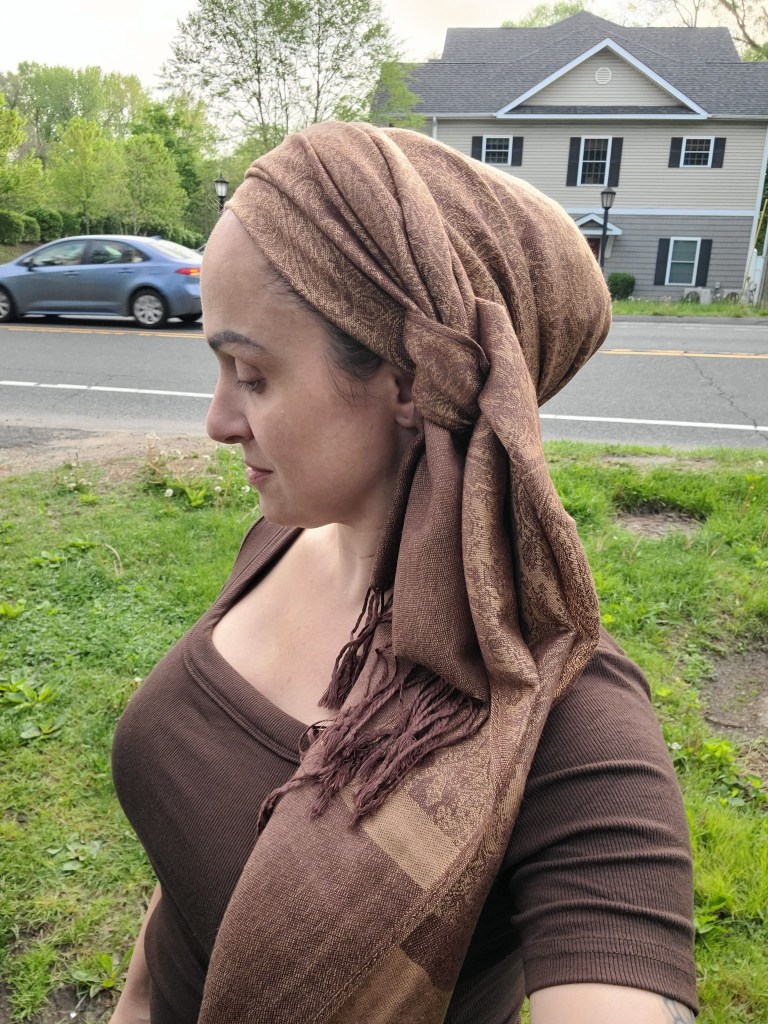 It’s a mediocre tichel. Not bad, but not what I imagined. Just fine! And seeing the ‘good enough’ wraps is important because at a certain point, good enough is perfect!