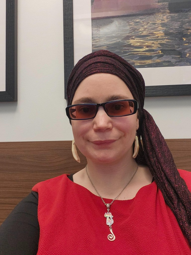 Tova is one of the warmest, funniest people I know… you can just talk and laugh with her for hours! There’s so much I could say about her, but I’ll just focus on a few key tidbits; she happens to be an EXTRAORDINARY cook of Indian food (she also is a culinary genius at other things, but I’m biased) and this is coming from me, a total Indian food connoisseur. She has a beautiful family and home, and she is very artistic. She makes beautiful earrings by hand! All this pairing of wonderful flavors and artistry comes out in her vibrant personality and beautiful tichel tying. In this video, she tells us a bit about herself and how she wears her headscarves in the professional world. She also has an incredibly important message for us about how to tie your tichels based on one’s face shape. Listen up!