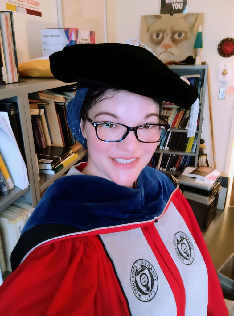 I’m from West Virginia originally, and I’ve been married to my husband, who was also my high school bestie, for 19 years. We have a son in kindergarten who aspires to run a dinosaur farm and three cats who are in charge of us. I play recorder with a few local chamber ensembles and spin, weave, and knit with historical tools. I didn’t see a stoplight until I was 3, and my first memory is watching a radio telescope from my backyard in Greenbank. My favorite way to unwind is to use text-to-speech software to read books to me while I make things with wool. I’m trying to get out of the house more, though – this summer I’m co-teaching a course in experimental archaeology (how to reverse engineer lost trade skills from the past) and will be foraging, gardening, and trying to make clay pots from scratch.