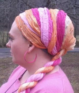 I buy scarves that I like, but some fabrics are not always predictable once they are on your head. Andrea has helped me troubleshoot my tichel issues. I’m still learning to tie my tichels and some days even a simple wrap takes me ten minutes because I can’t get things to sit on my head properly.