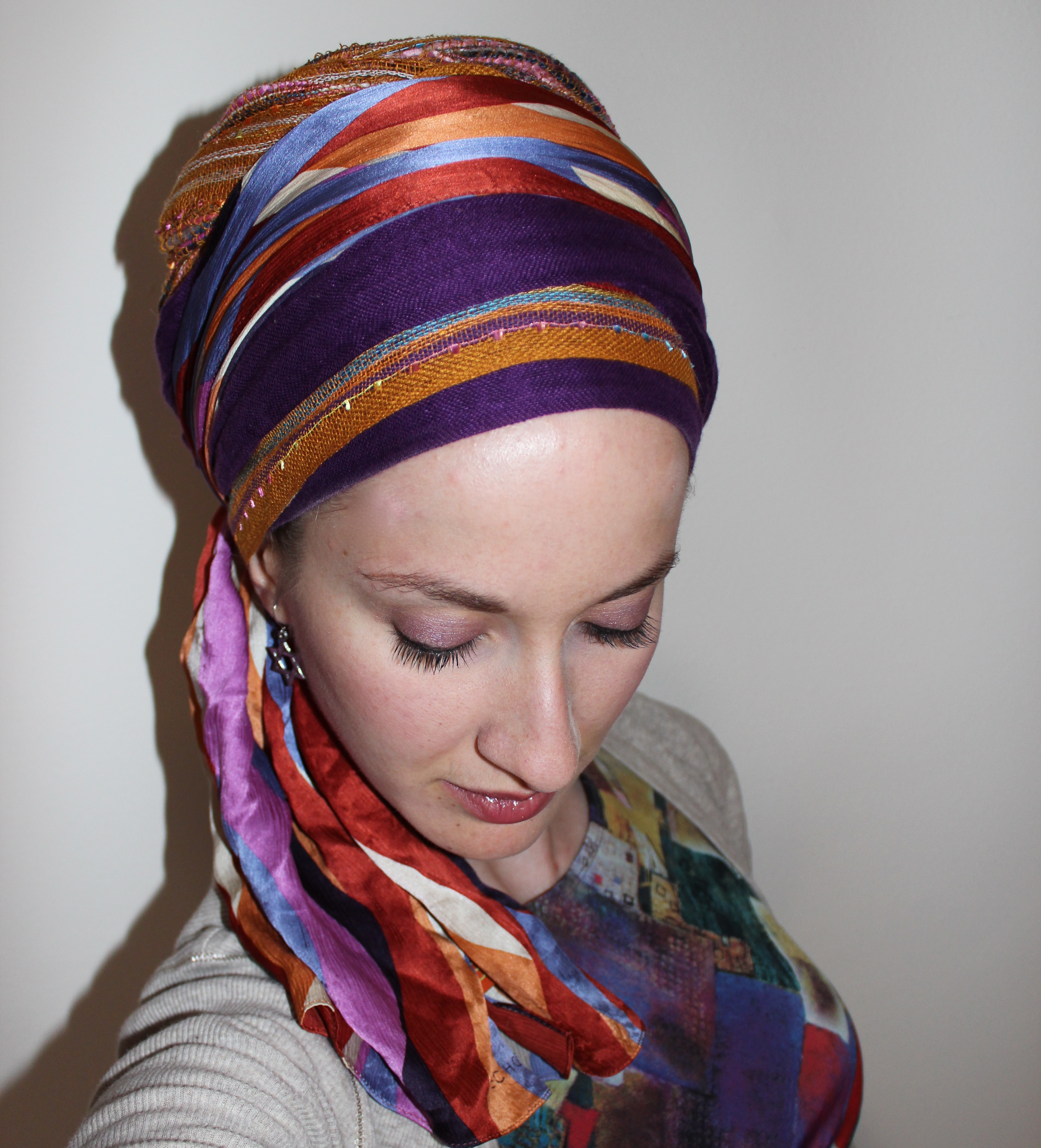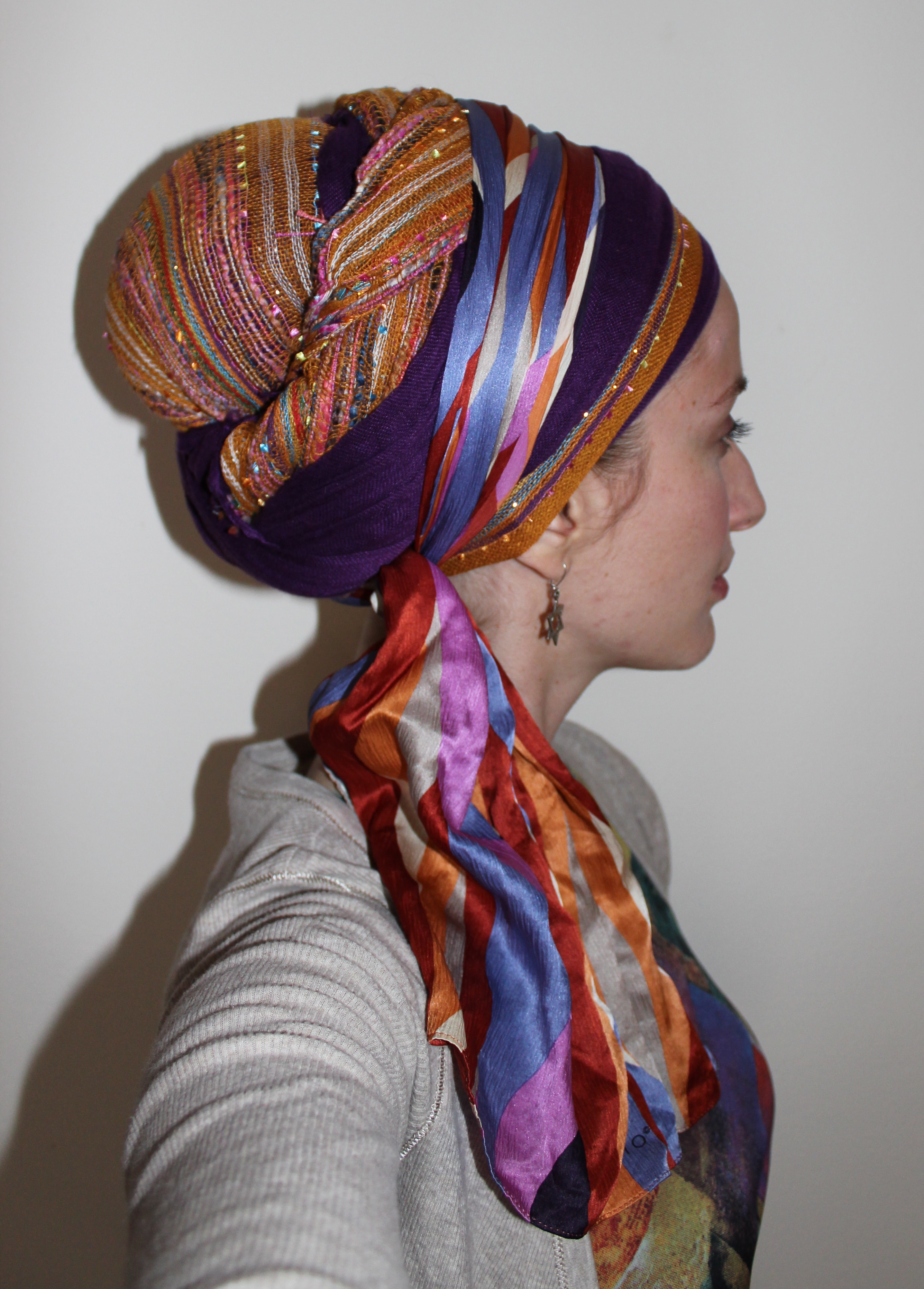 It’s not every day that I celebrate being married to my outstanding husband for exactly two years. Here is the tichel that I wrapped for our anniversary: